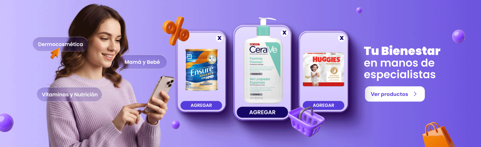 En Cuidafarma también encontrarás una completa línea de dermocosmética y cuidado personal pensada para cada etapa de la vida. Descubre productos para mamá y bebé, como fórmulas infantiles, pañales, biberones y cremas para el cuidado de la piel sensible.Además, contamos con vitaminas y suplementos para apoyar el crecimiento infantil y el bienestar diario. Si buscas mejorar tu energía y salud, puedes encontrar colágeno, magnesio y multivitamínicos que complementan tu rutina.También ofrecemos productos para el bienestar integral como preservativos y lubricantes, pensados para una vida saludable y responsable. Todo lo que tu familia necesita en una farmacia peruana confiable.